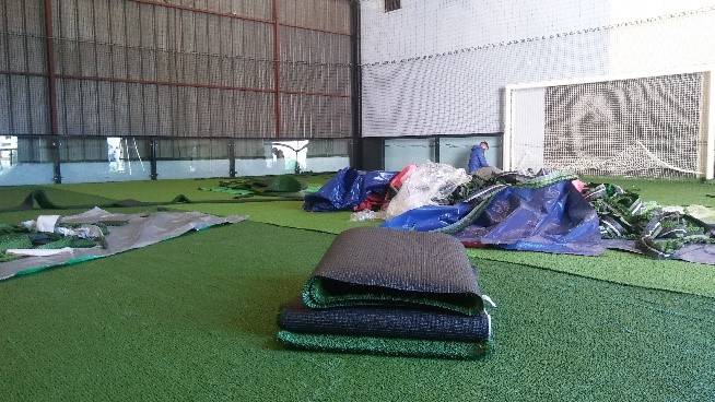 Le terrain de mini foot est d’une dimension de 15 m x 25 m et 5 m de hauteur adaptée pour optimiser et exploiter le maximum de surface proposé par le local du chantier.