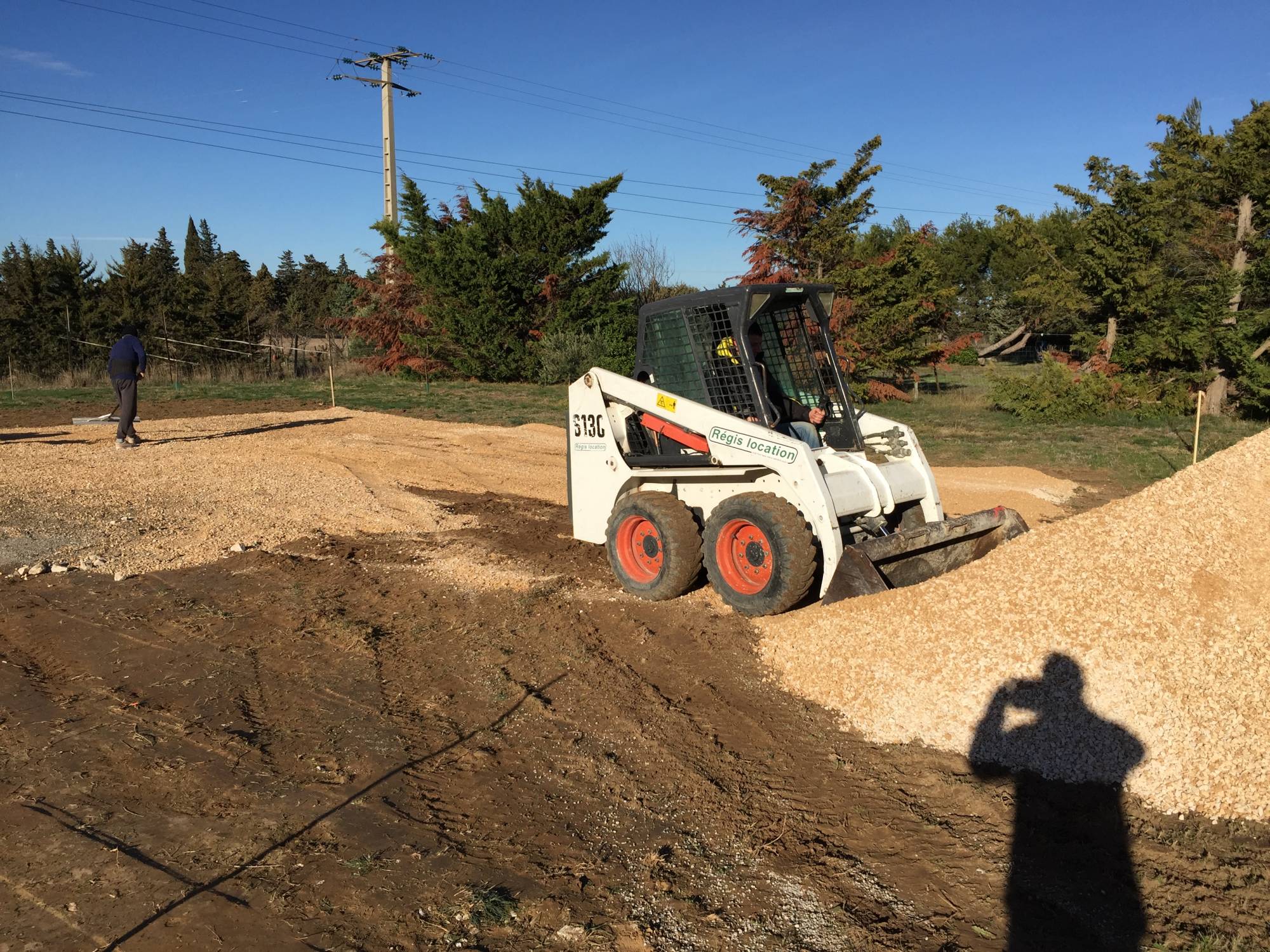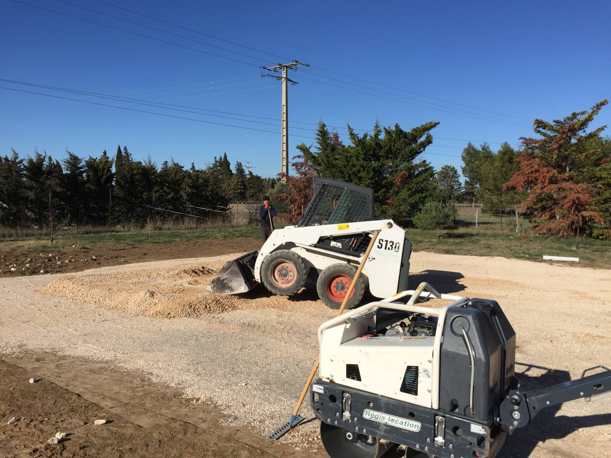 10 cm de tout-venant sont alors étalés grossièrement, réglé puis compacté à l’aide de machines.