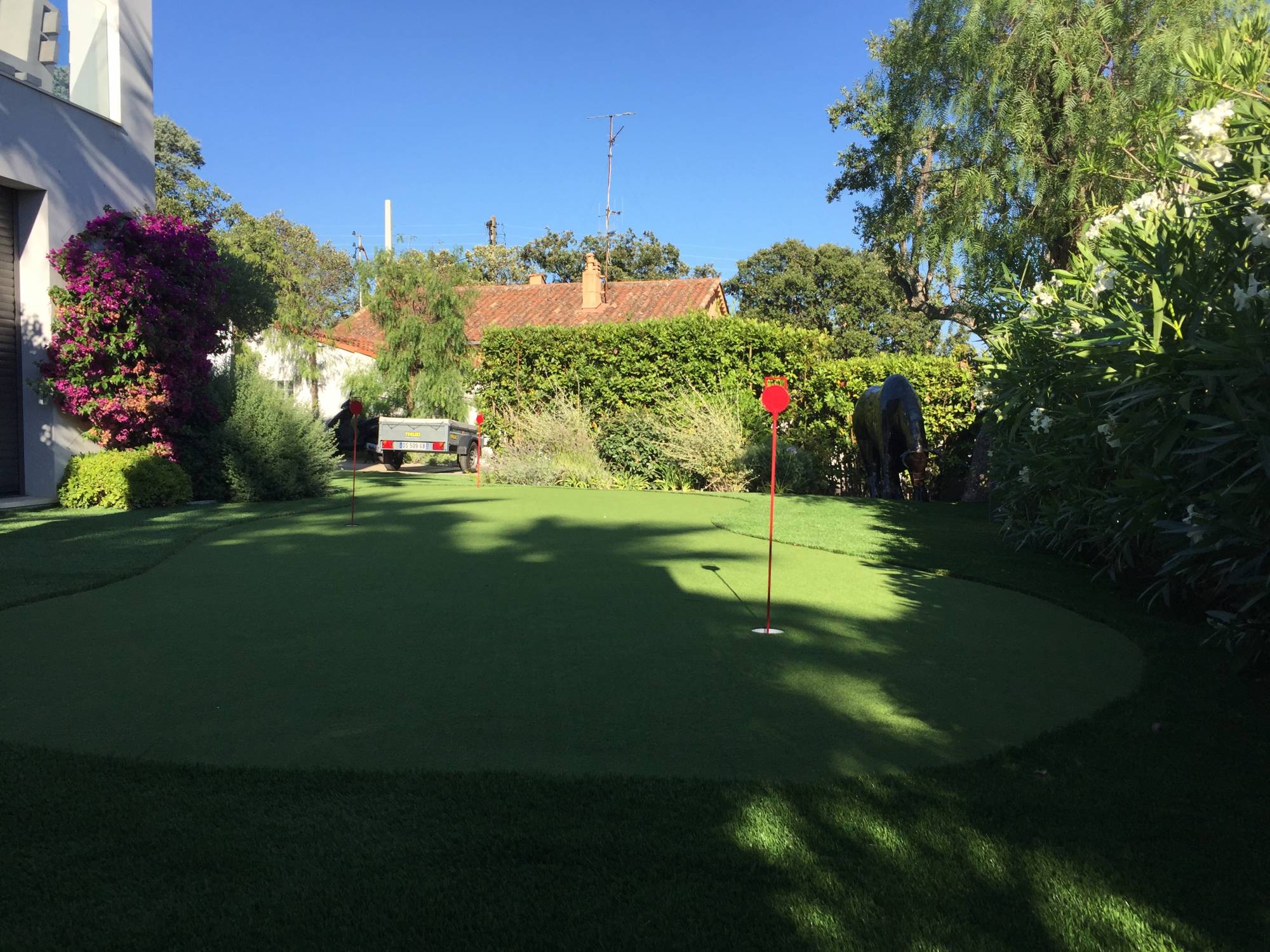 L'équipe d'universgazons excelle dans ce domaine, tous golfeurs et passionnés de ce sport magique qu'est le Golf, nous avons été les premiers à créer et gérer un golf 9 trous intégralement en gazon synthétique en France dans les Bouches du Rhône. Pas moins de 40000m² de gazons artificiels ont été installés et donc testés.