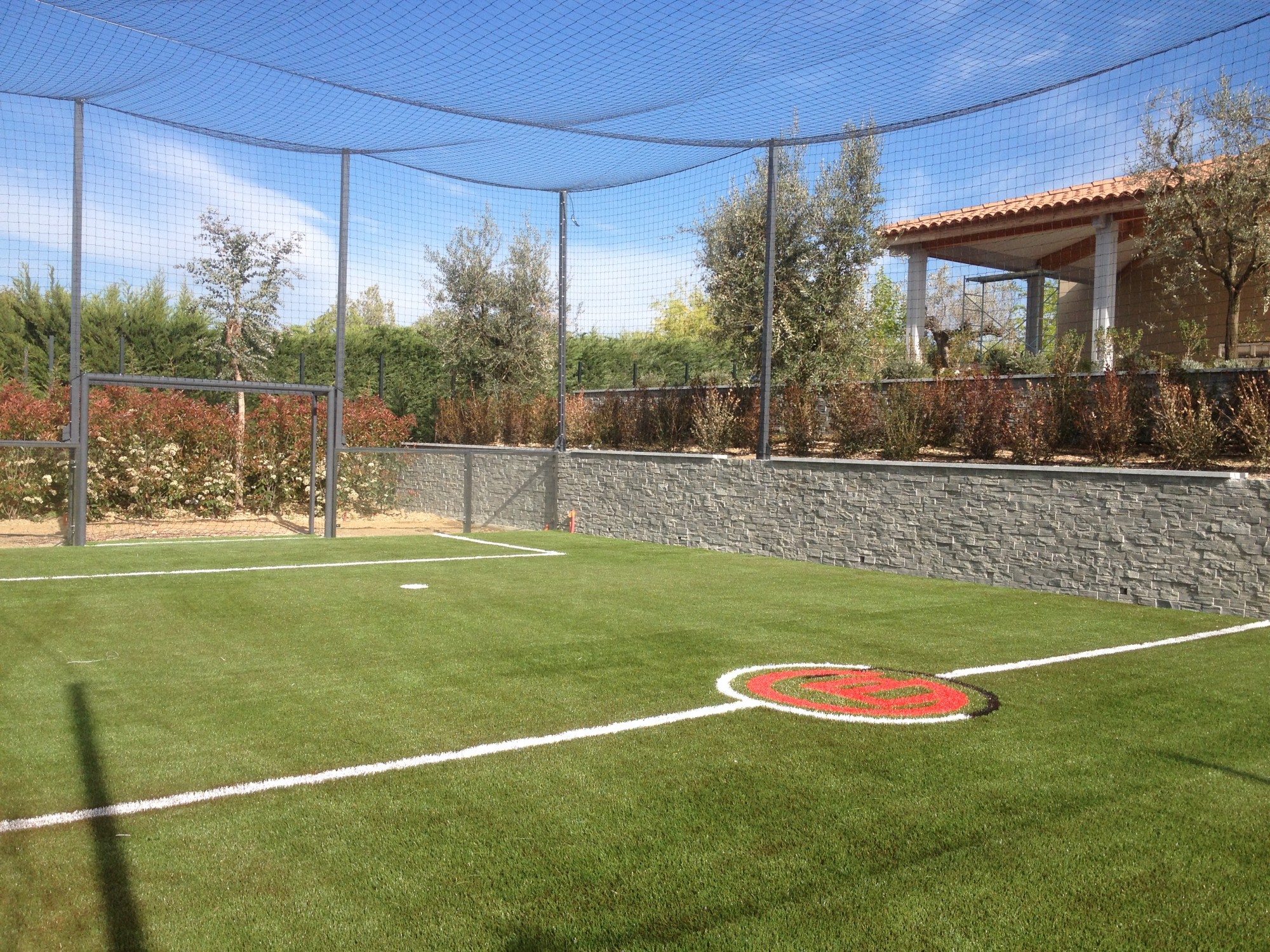 Notre client, mannequin pour un grand couturier français, vivant à proximité de notre magasin de bouc bel air, souhaitait, afin d'agrémenter son jardin, mettre en place un petit terrain de foot privé.
