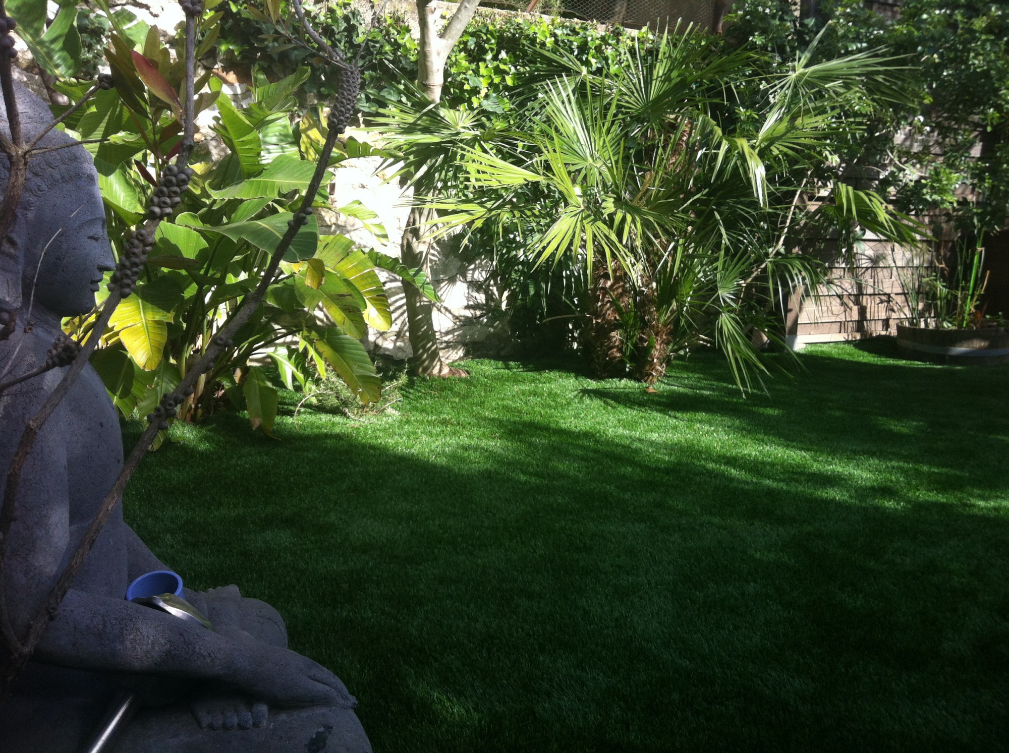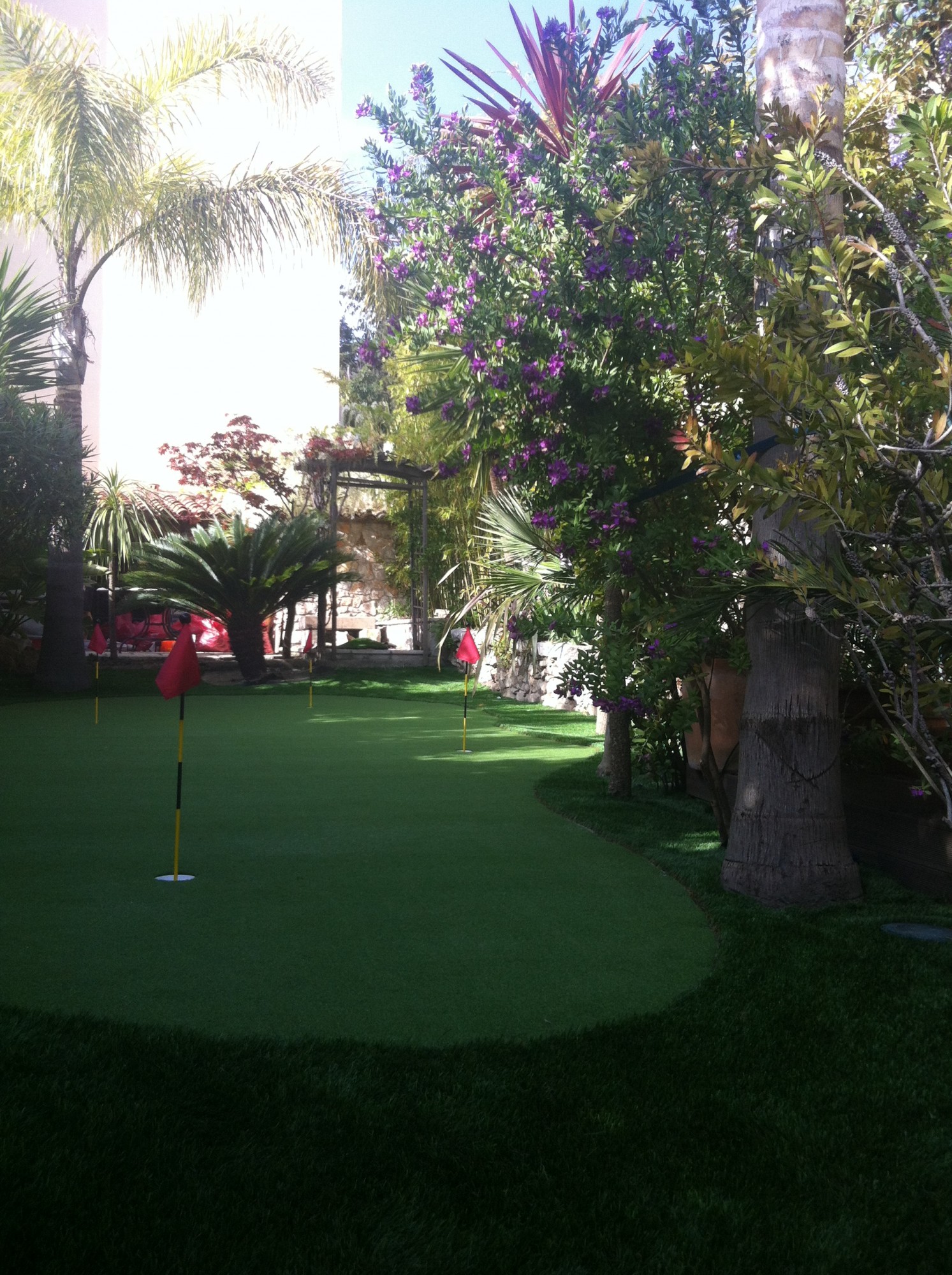 L'accés trés difficile de ses maisons intra-muros à Cassis et l'accès au jardin de ce fait à rendu l'intervention de notre équipe de poseurs professionnels trés difficiles. Mais leur attachement à installer des greens synthétiques était plus fort que ces problèmes d'accès. En fait, juste un peu plus de manutention que d'habitude, c'est tout.